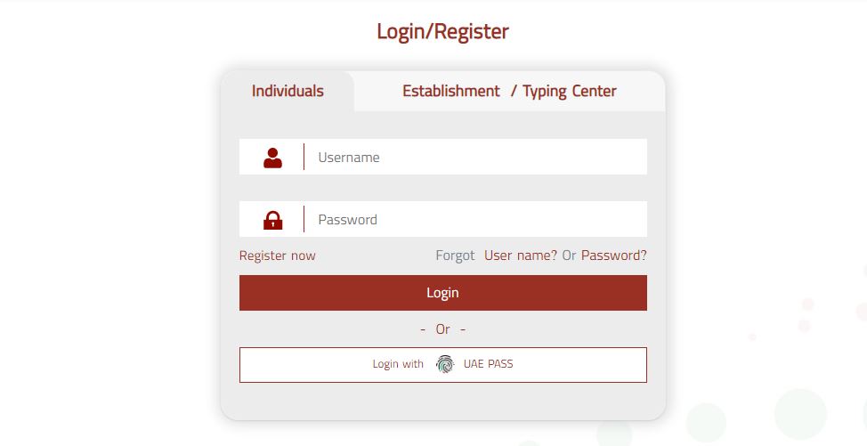 1st Step Create an Account: You can either create a new user account by selecting the “Individual” option or use the UAE Pass to directly log in if you are already a user of it.